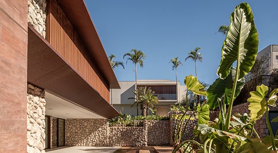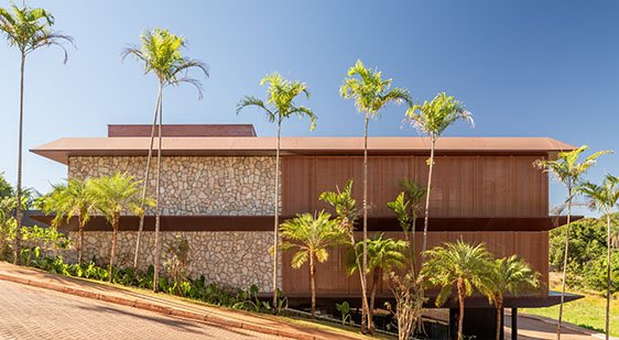 Situada em um condomínio de chácaras no Lago Sul em Brasília, a residência RG25 é uma casa 810m² com 4 suítes, sendo uma máster. O terreno acidentado e uma bela vista para o poente foram o norte deste projeto.